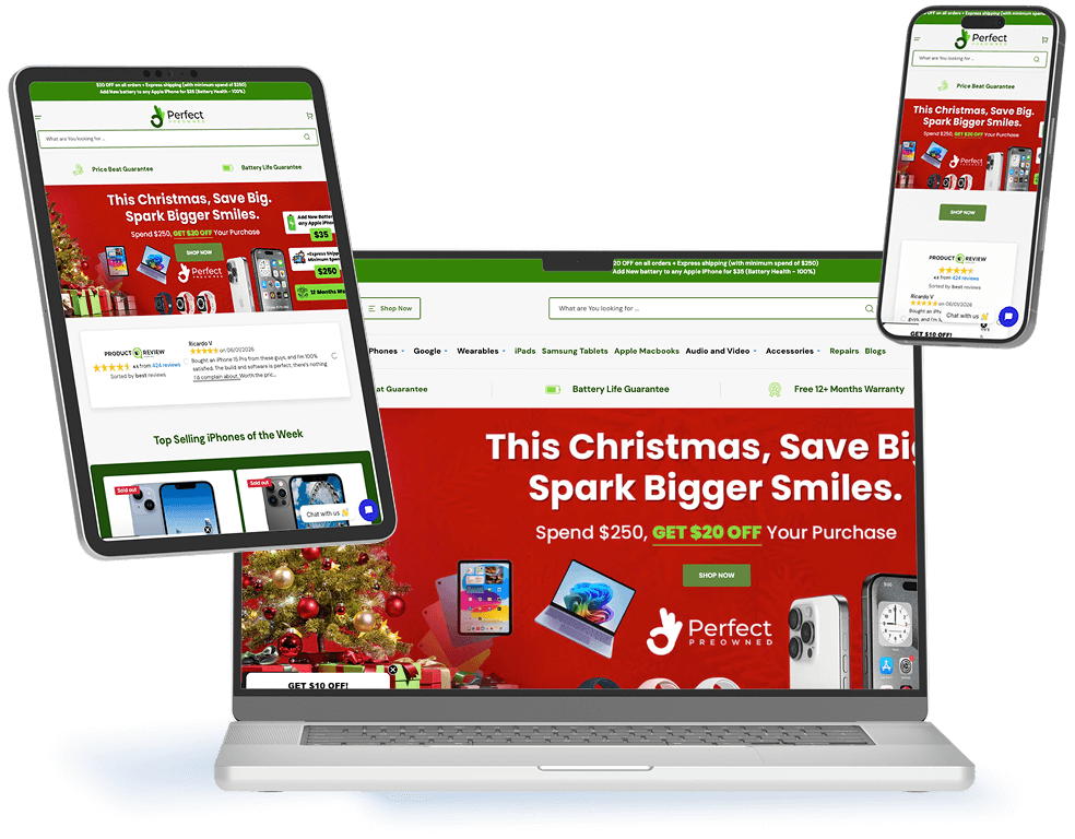 Perfect Preowned is an Australian ecommerce brand (under Bloombird Pty Ltd). They specialize in refurbished electronics such as iPhones, Samsung phones, iPads, MacBooks, and accessories. They position themselves as a value-driven, trustworthy alternative to buying new electronic devices. The ecommerce business offers graded refurbished products (Excellent/Good), free shipping & returns, multiple payment options, and a money-back guarantee.